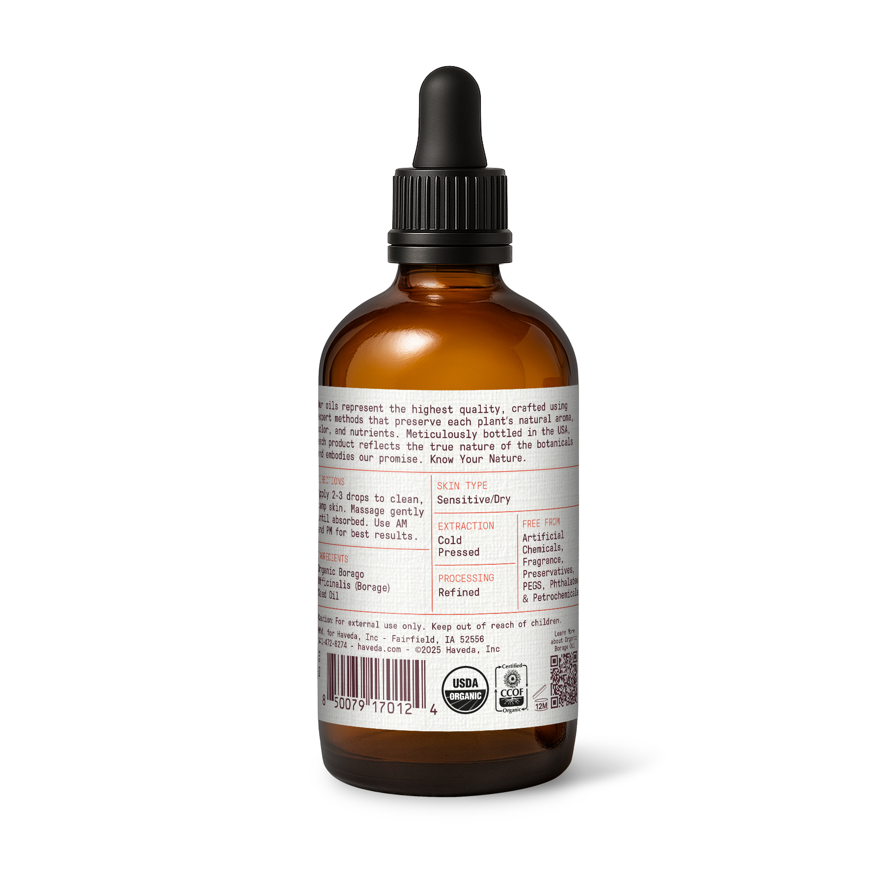 Organic borage oil, cold pressed. High-GLA moisture that supports a comfortable, supple feel on very dry skin. Clean, one-ingredient formula at Haveda.