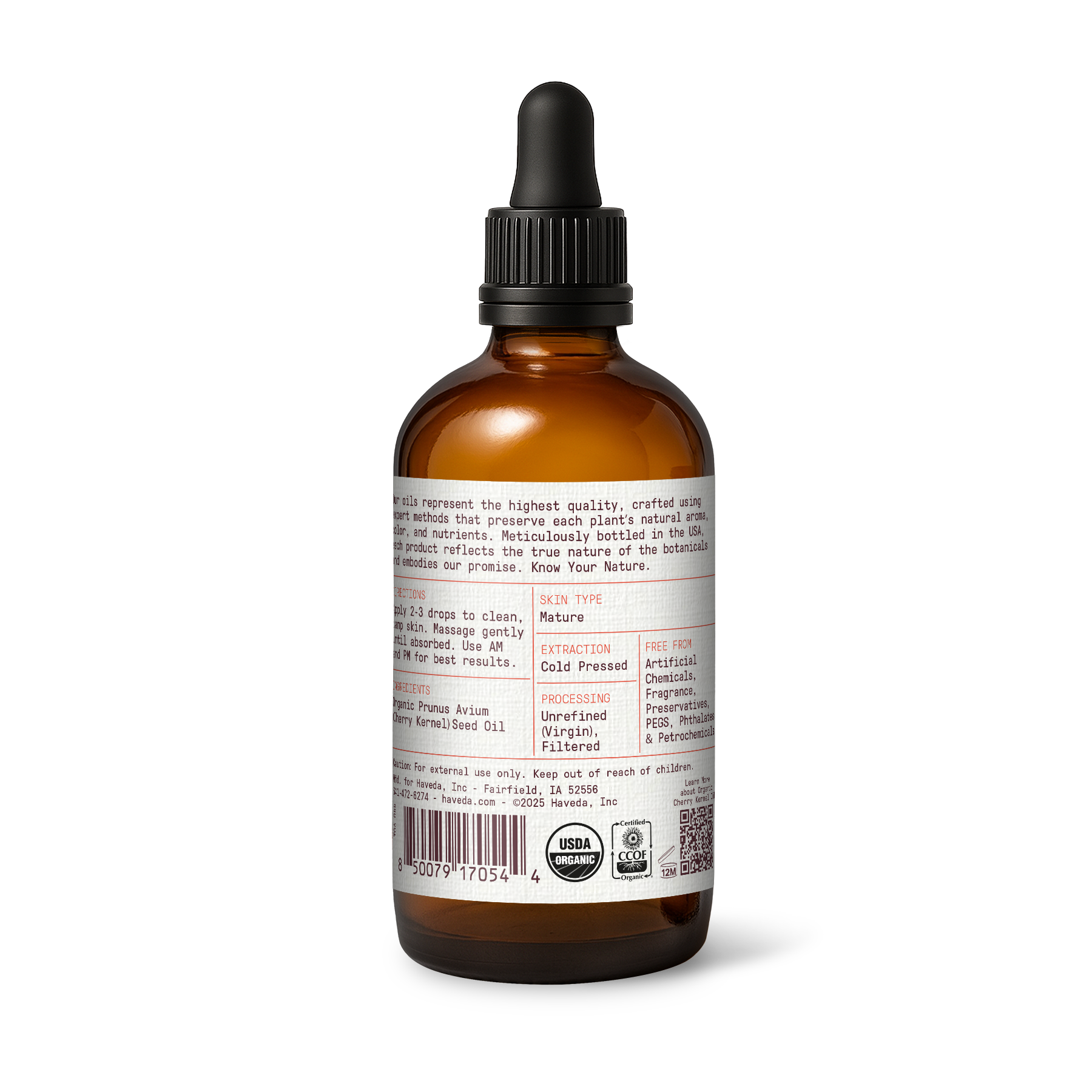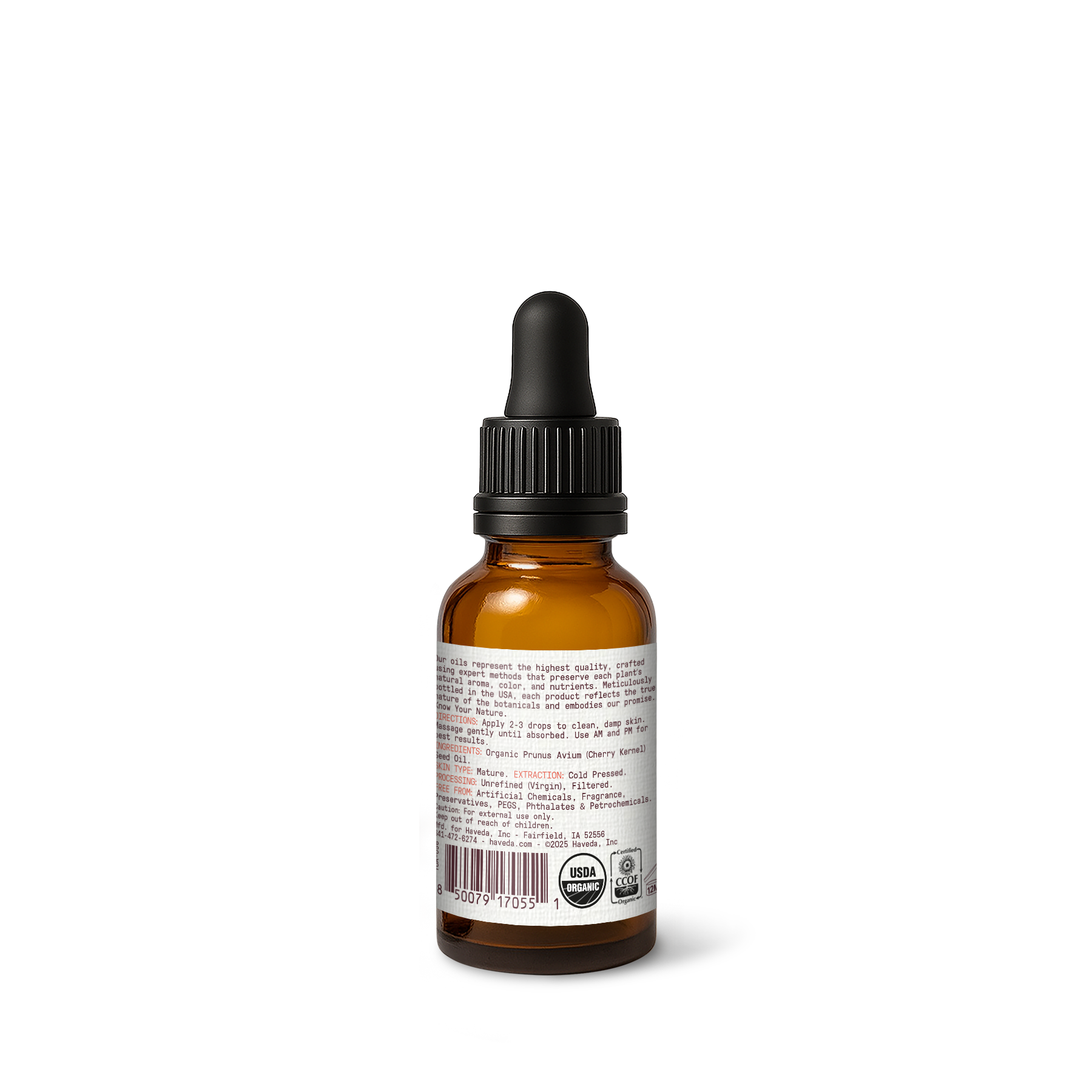 Organic cherry kernel oil is cold-pressed from sweet cherry seeds. Containing vitamins A and E, as well as antioxidants and fatty acids, it can nourish, hydrate, and protect the skin and hair, while also promoting a more youthful, radiant appearance.