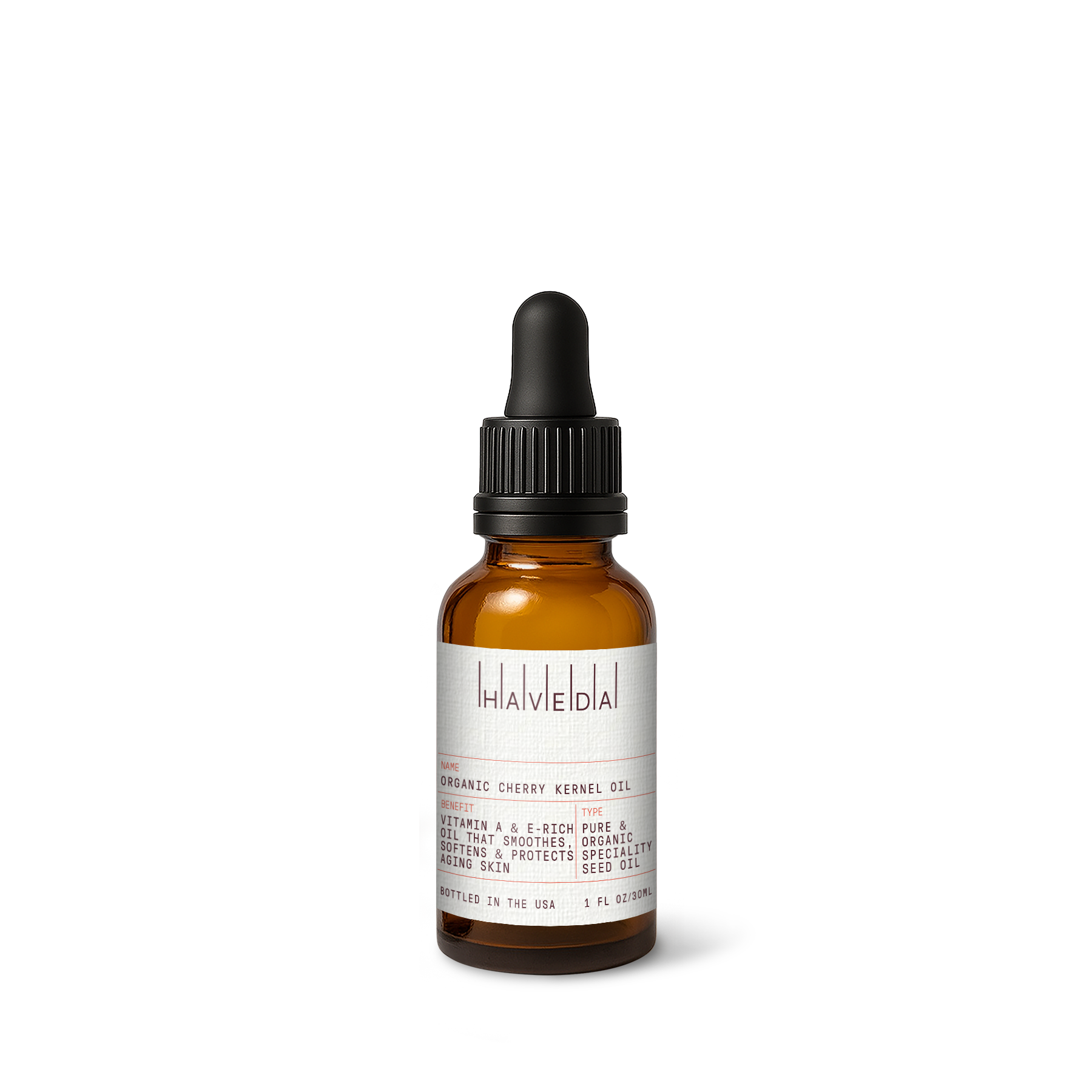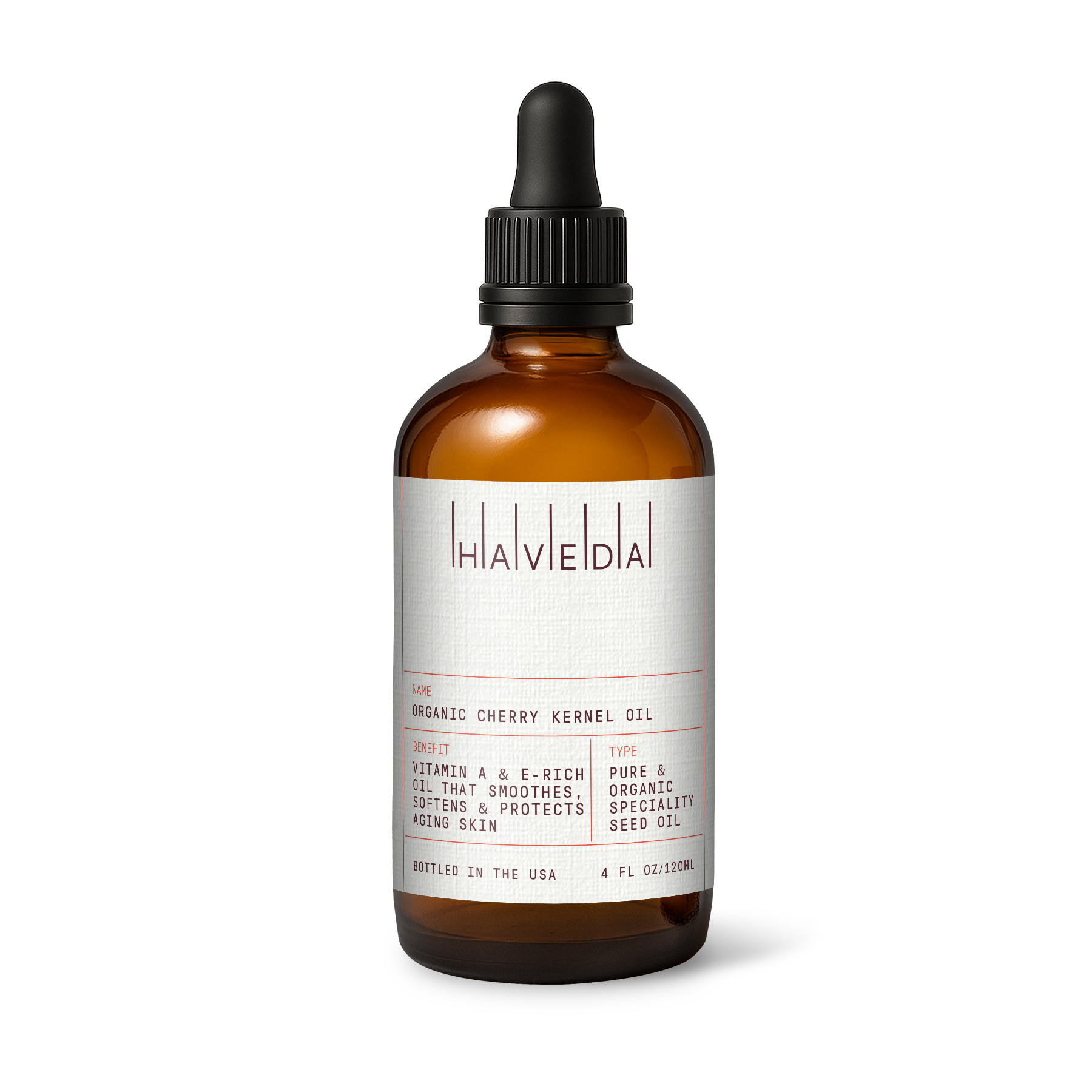 With your palms, warm a few drops of cherry kernel oil and apply directly to the scalp and mid-lengths of hair. You can leave this in for 30-60 minutes before washing, or if you’d rather, use a smaller amount on damp hair as a light, nourishing serum after washing.