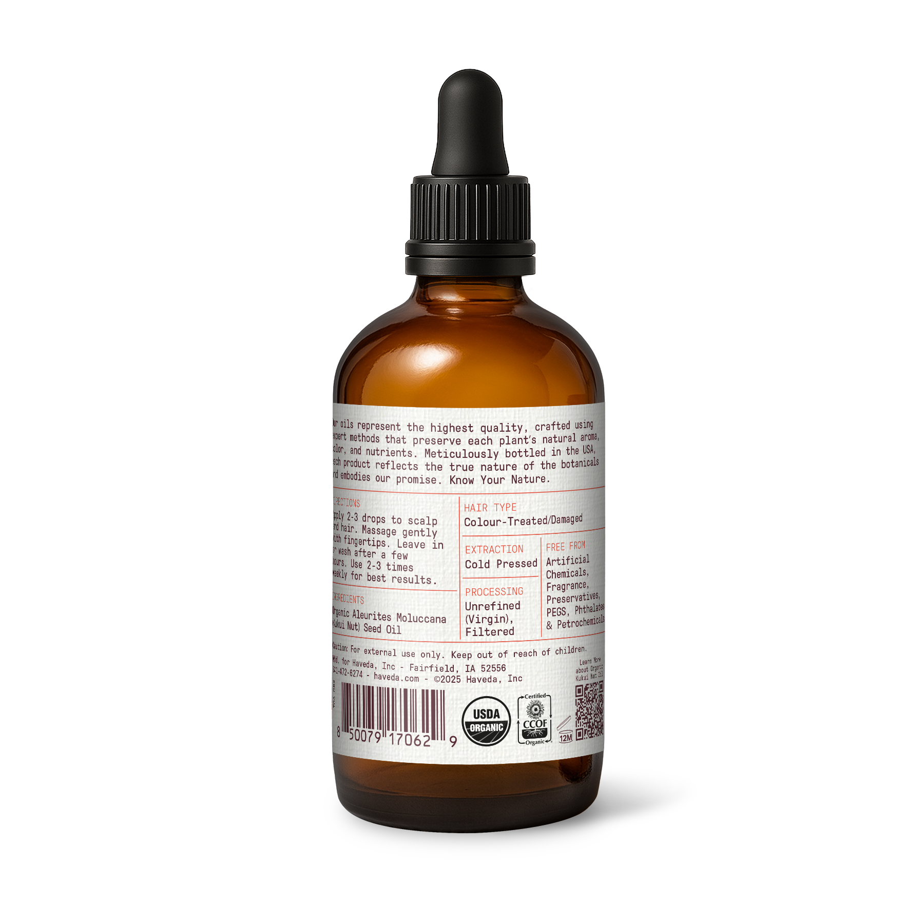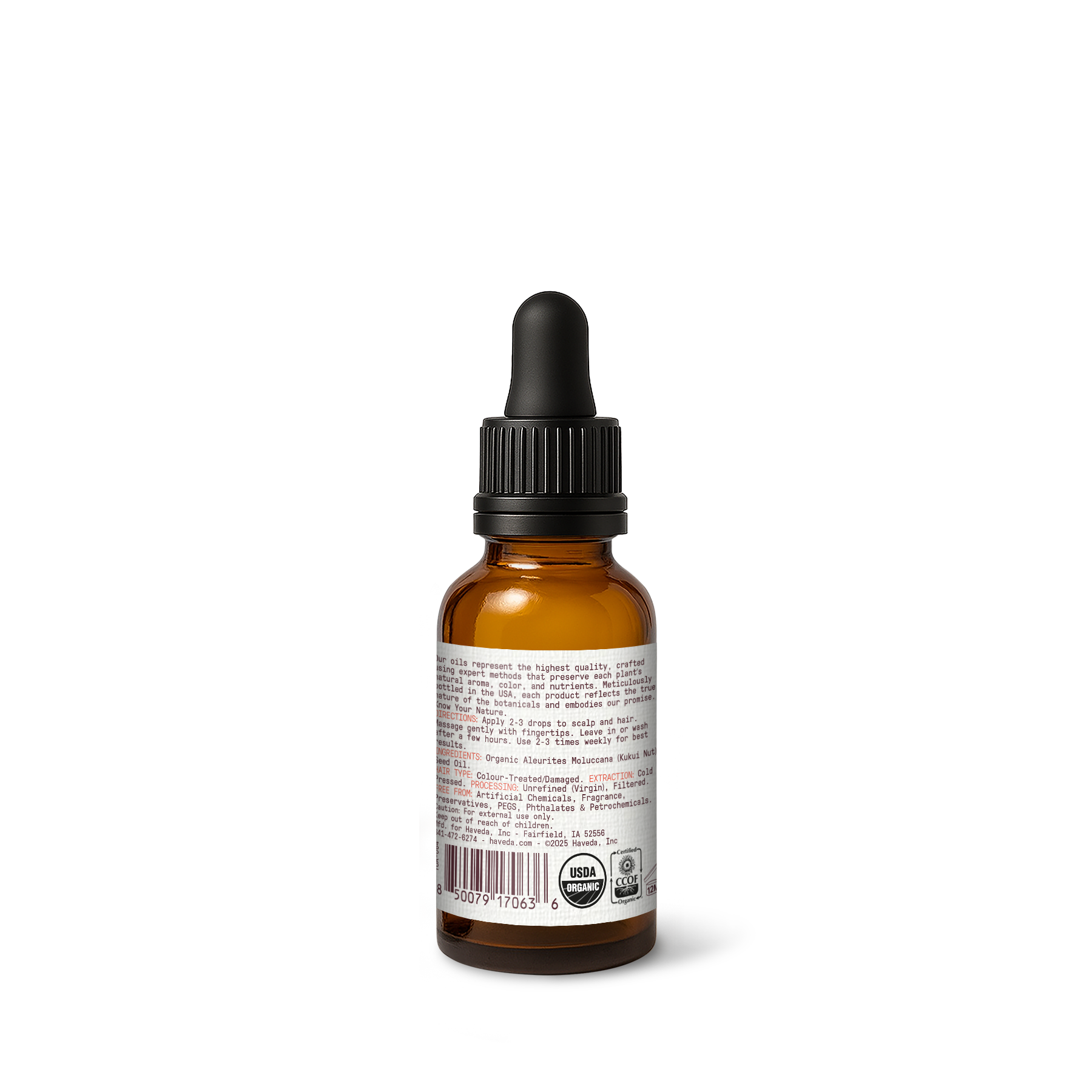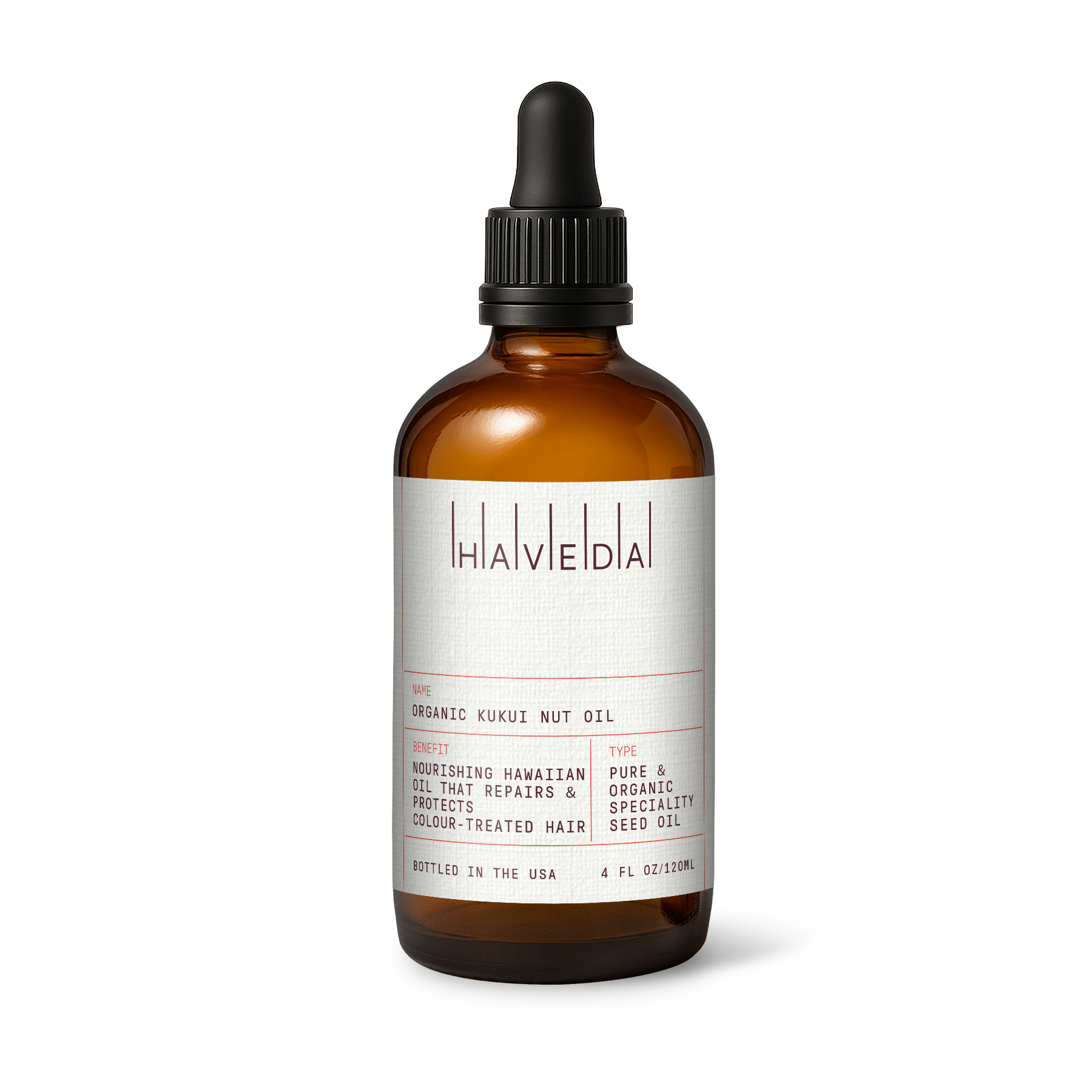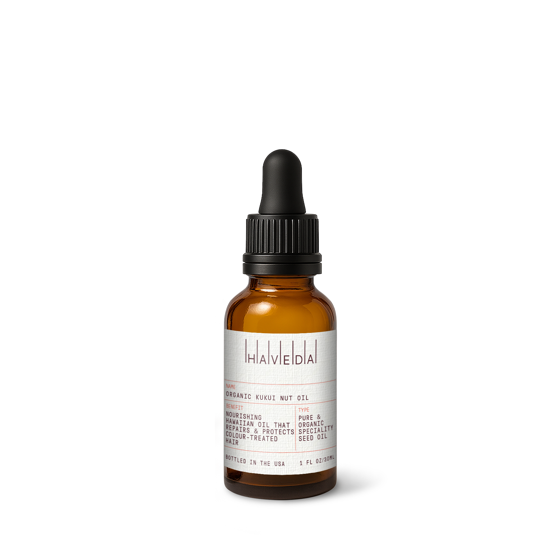 Organic kukui nut oil is cold-pressed from the nuts of a kukui tree - which is native to Hawaii. With omega-3 and omega-6 fatty acids, as well as vitamins A, C and E, it can deeply nourish and protect the skin.