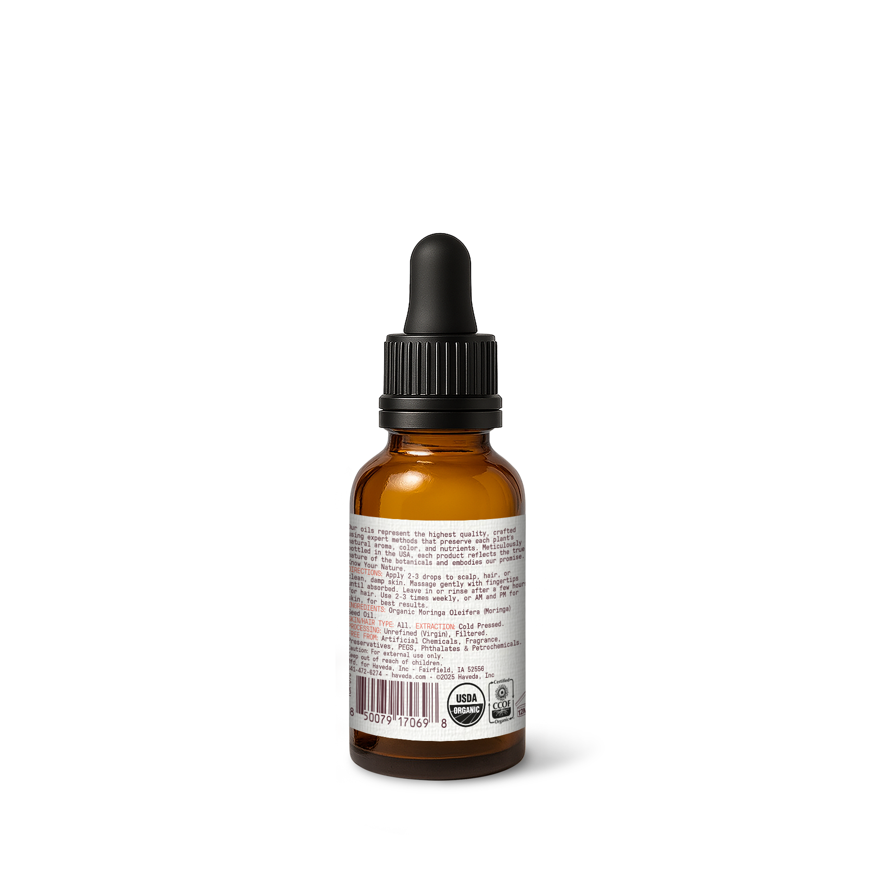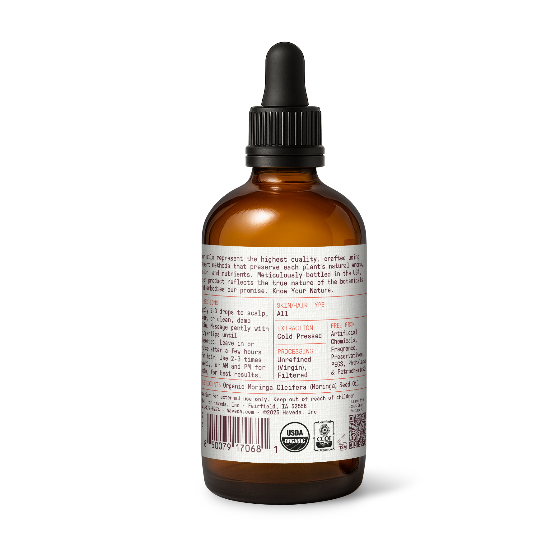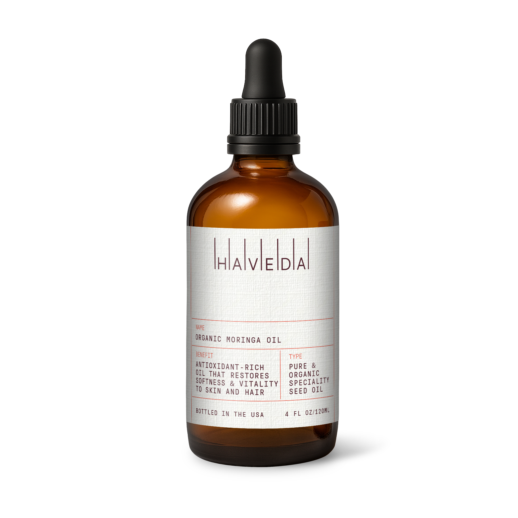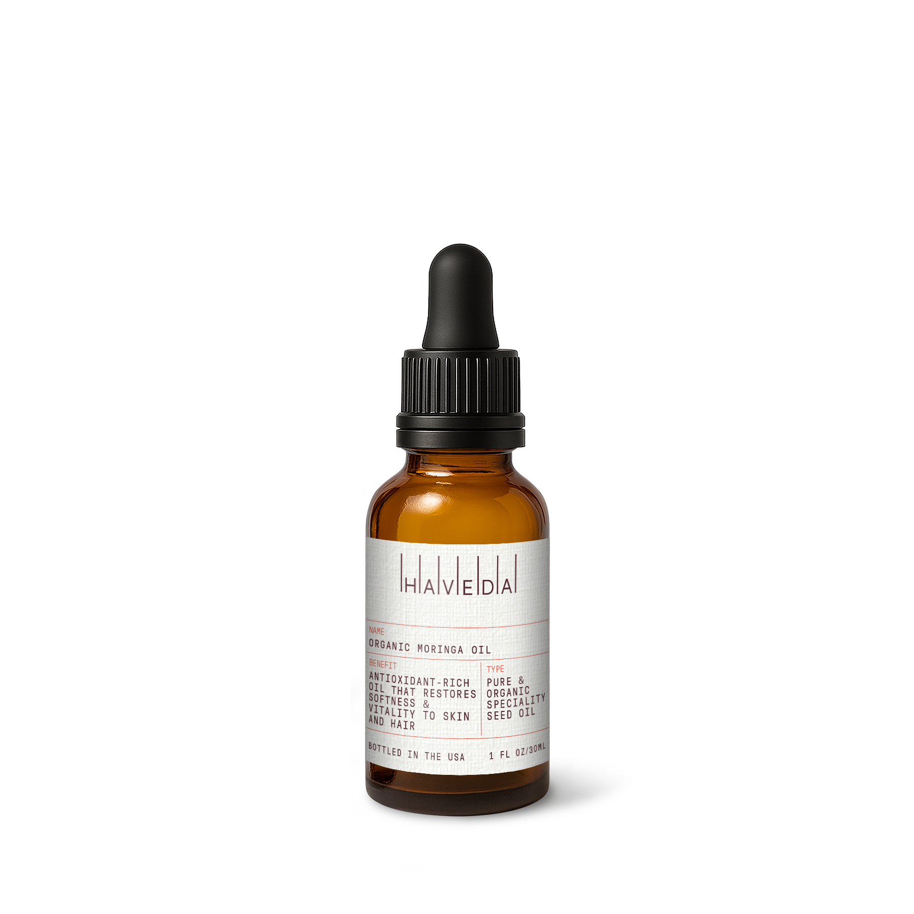 Moringa oil is lightweight, so unlike heavier oils, it’s fast-absorbing and highly nutrient-dense. When applied to skin, it won’t leave a greasy residue and is also perfect for daily use.