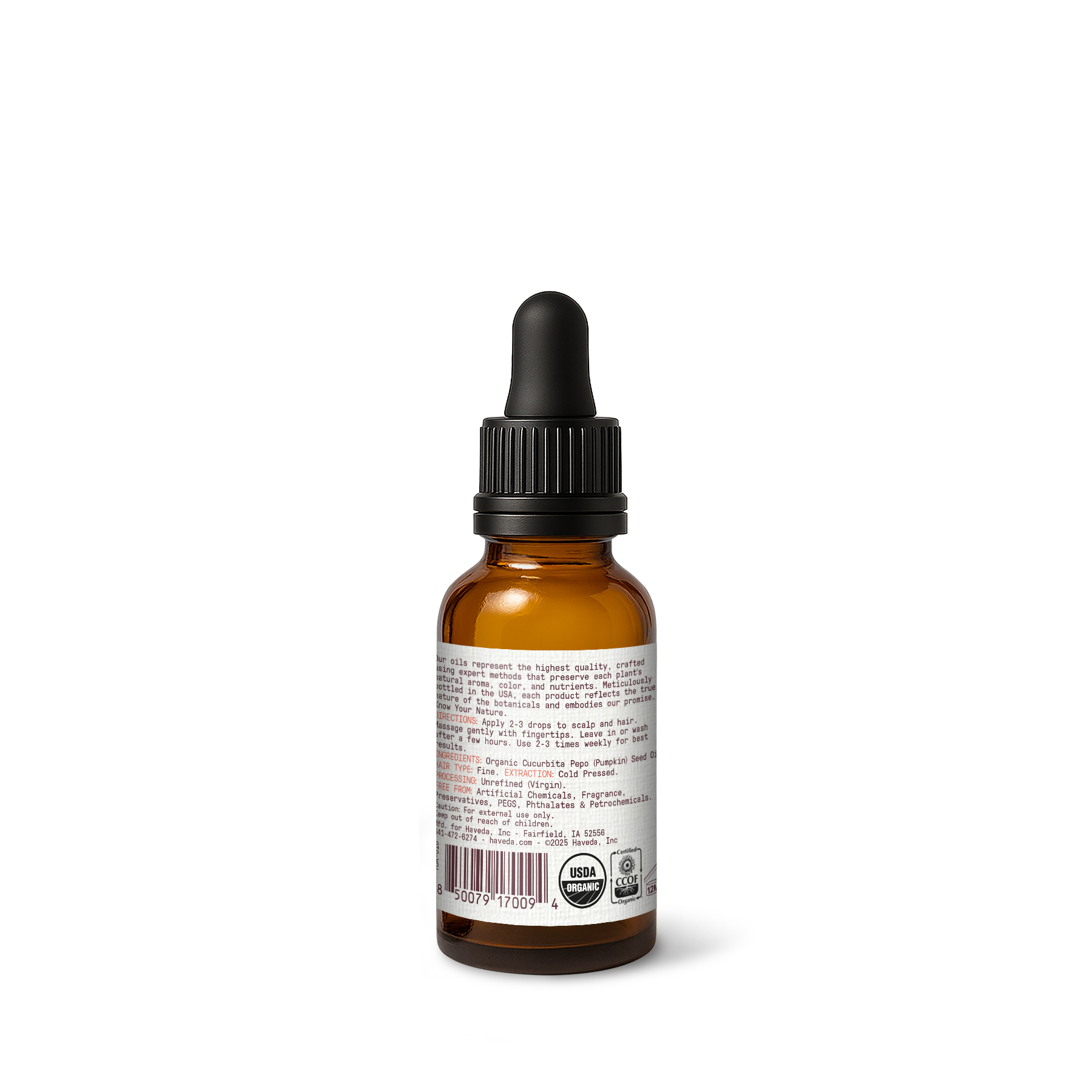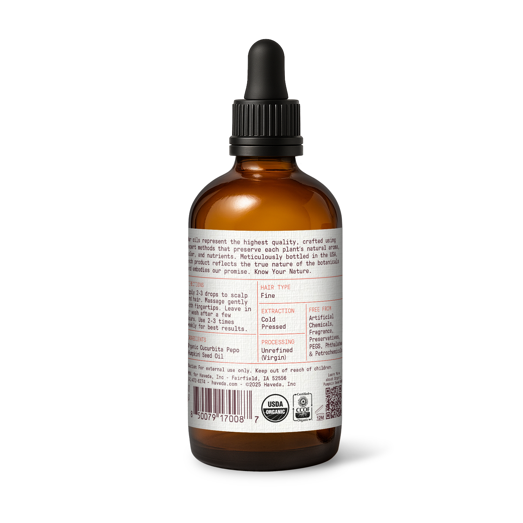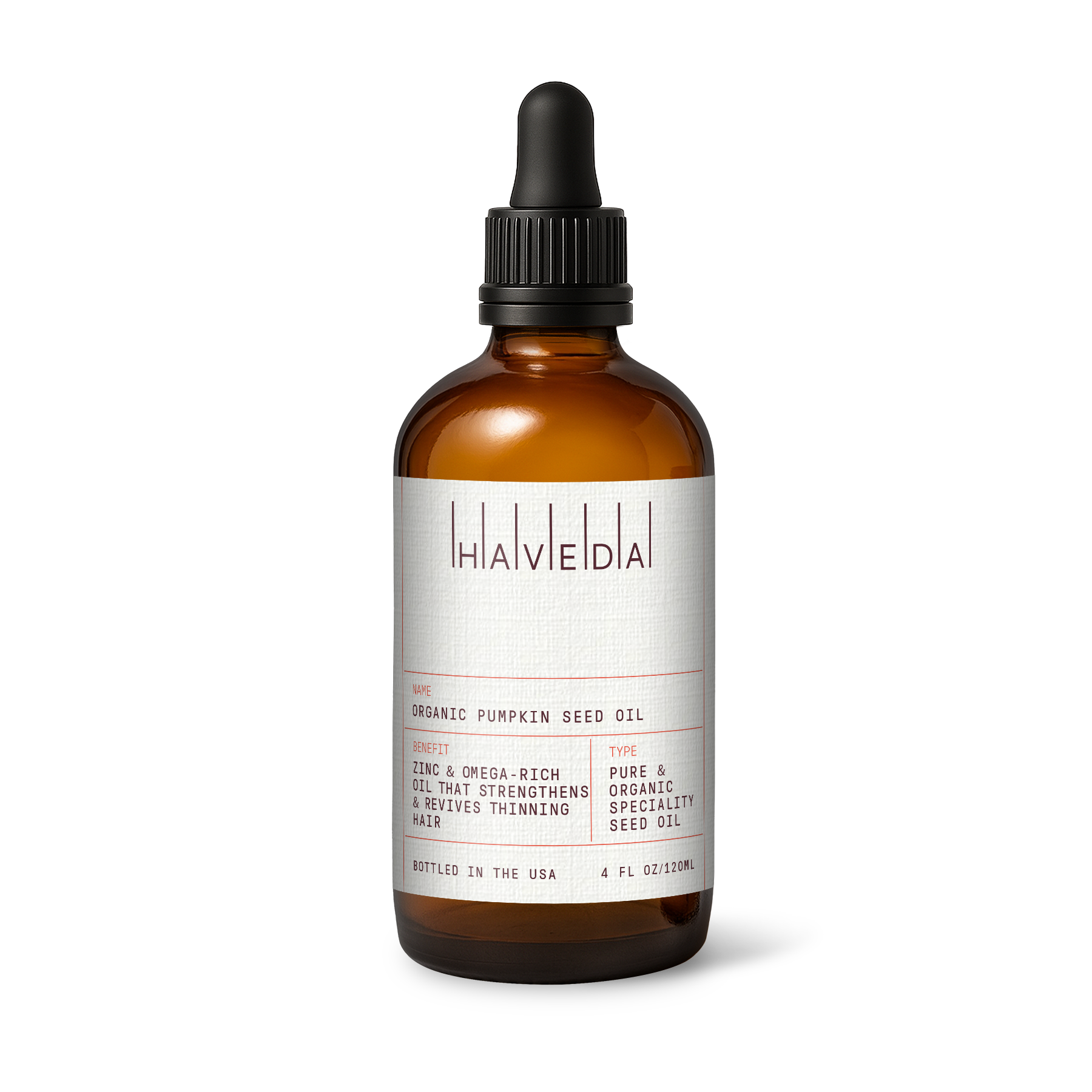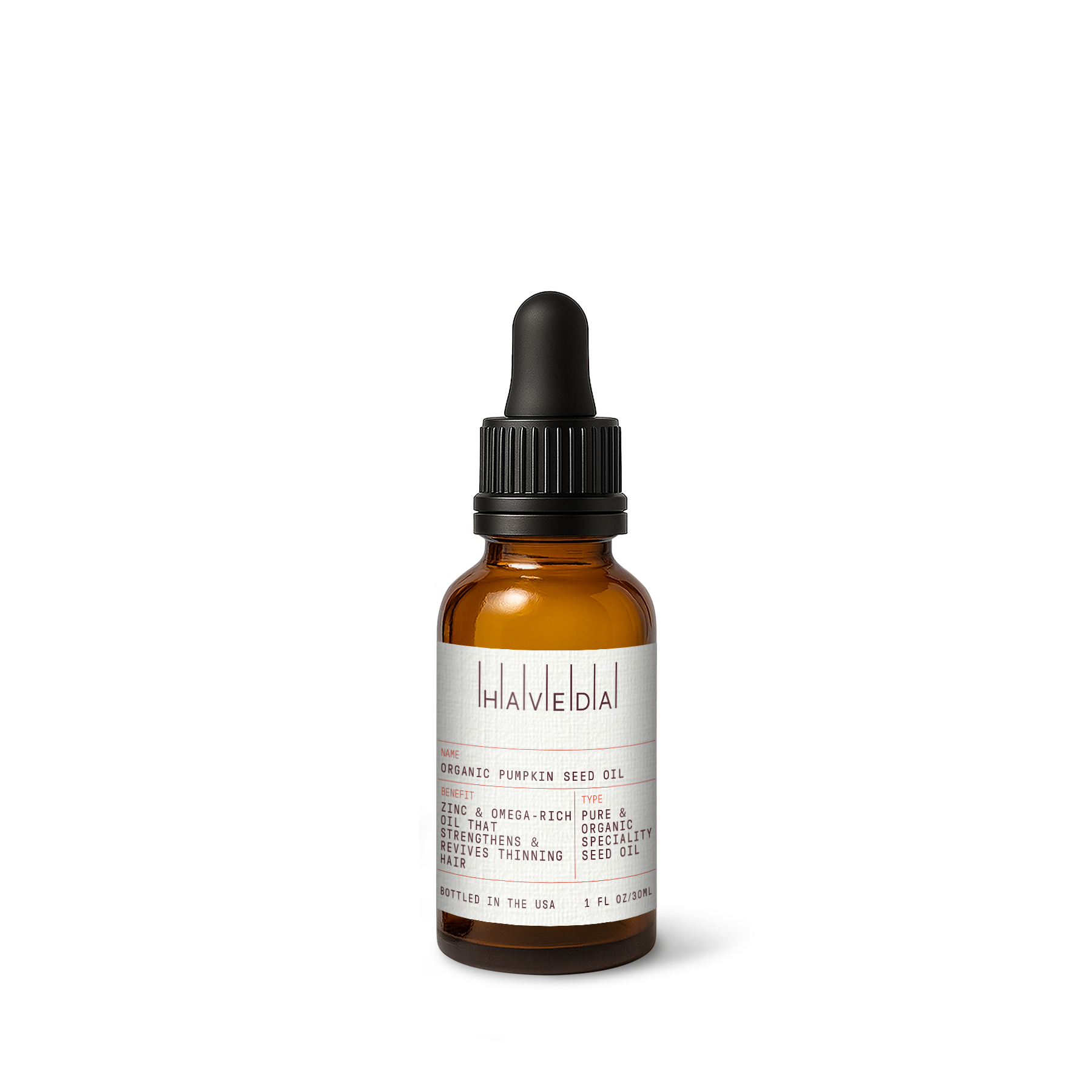 Organic pumpkin seed oil, cold pressed. Balancing moisture for skin and scalp with a silky, quick-absorbing finish. Clean, single-origin care from Haveda.