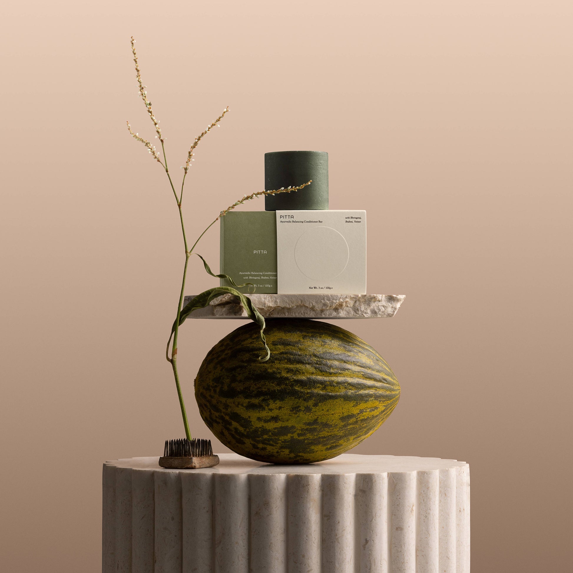 Behentrimonium methosulfate (and) cetearyl alcohol, Cetyl alcohol, Distearoylethyl dimonium chloride (and) cetearyl alcohol, Cetearyl olivate (and) sorbitan olivate, *Bacopa monnieri (Brahmi) leaf powder, *Theobroma cacao seed butter, *Garcinia indica seed butter, *Eclipta prostrata (Bhringaraj) oil, *Orbignya oleifera (Babassu) seed oil, Stearic acid, Hydrogenated ethylhexyl olivate (and) hydrogenated olive oil unsaponifiables, Oryza sativa (Rice) seed water & saccharomyces ferment & lactobacillus ferment, water & lentinus edodes mycelium extract & lactobacillus ferment, *Eclipta prostrata (Bhringaraj) leaf powder, *Vetiveria zizanioides (Vetiver) oil, *Santalum spicatum (Australian Sandalwood) oil, *Salvia Sclarea (Clary Sage) oil, *Nardostachys (Jatamansi) oil, Panthenol (Pro-Vitamin B5), D-Alpha Tocopherol, Gluconolactone (and) sodium benzoate. Ethically & sustainably sourced. **linalool, limonene *Certified organic **Naturally occurring ingredients of essential oils