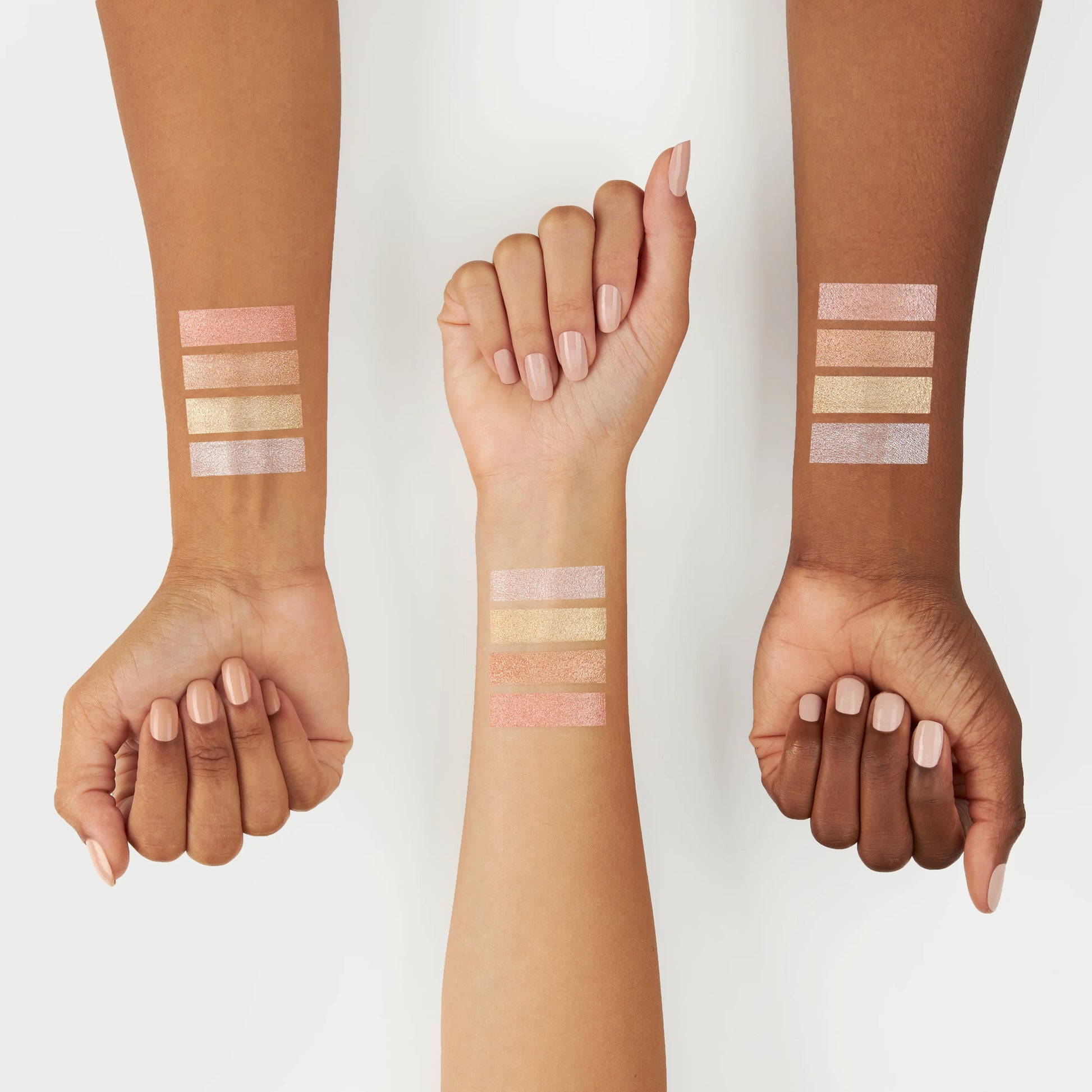 Versatile highlighter palette with four light-reflecting shades to illuminate, contour, and enhance youthful radiance while nourishing and soothing skin.